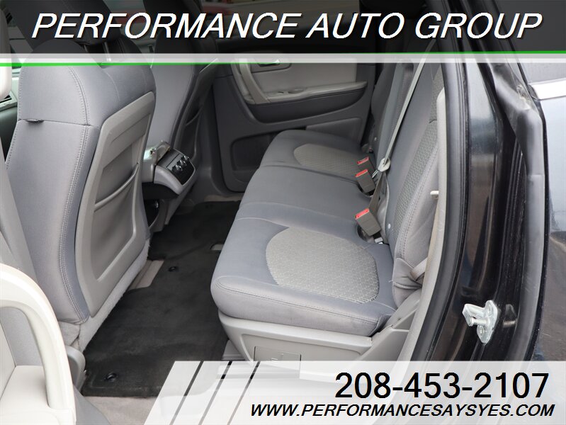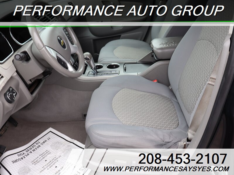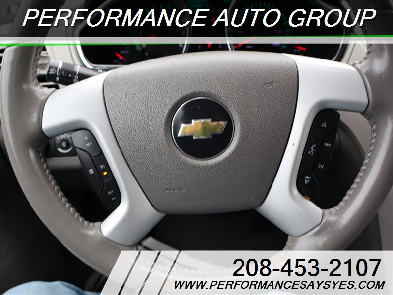 This Traverse LT offers the passenger capacity and flexible interior of a three-row SUV with a well-equipped LT trim package and a strong, smooth 3.6L engine — a practical choice for families who need space, comfort and a solid factory safety package.