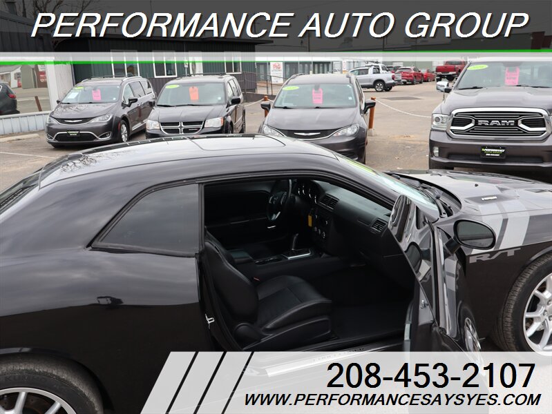 - Iconic Challenger coupe profile with long hood and short deck proportions and R/T badging.