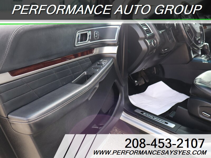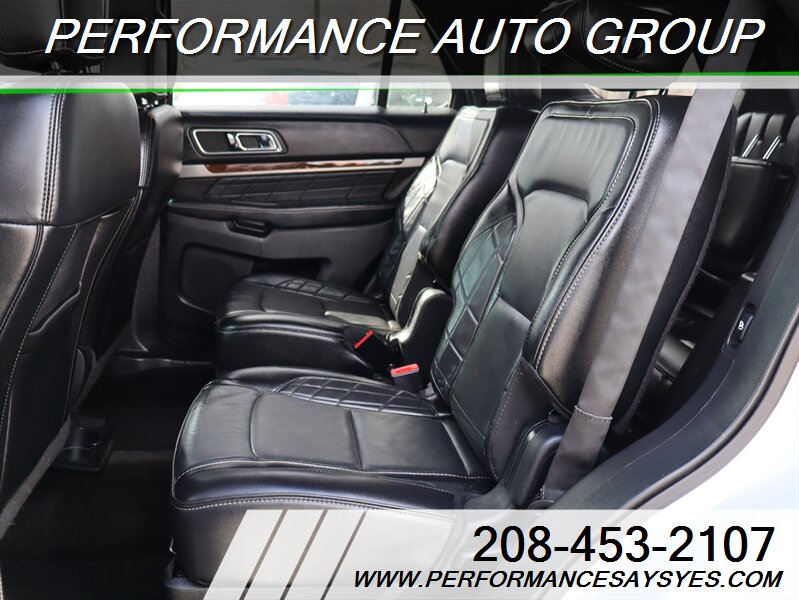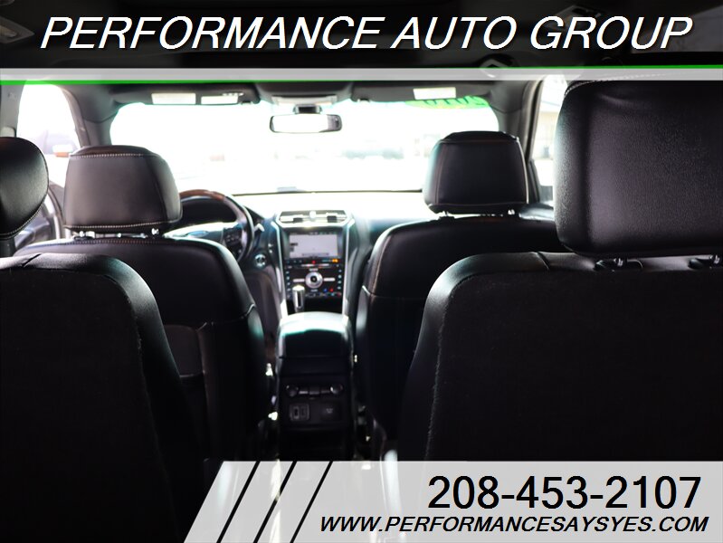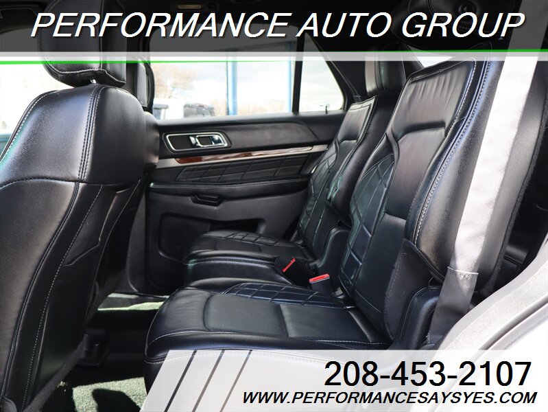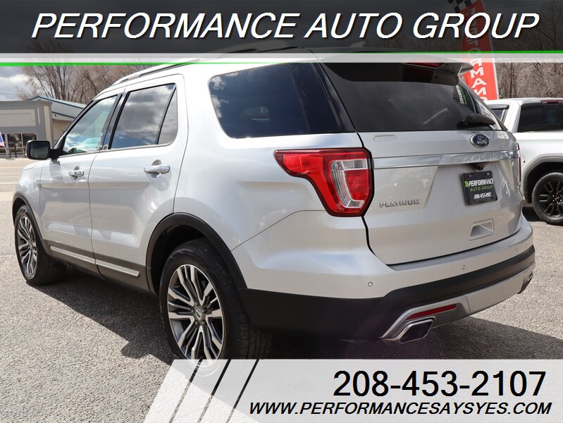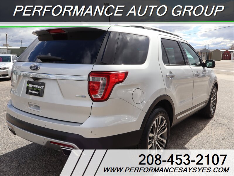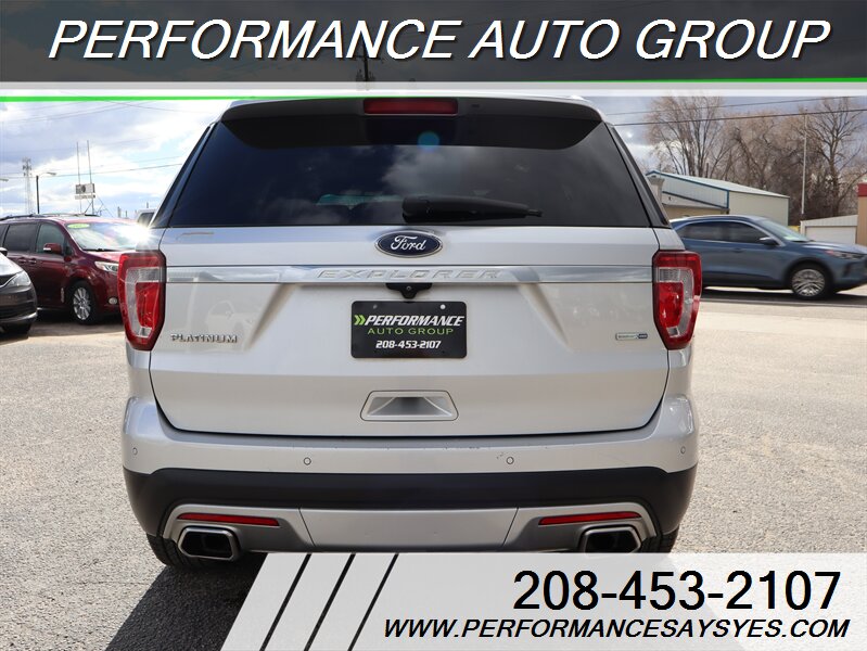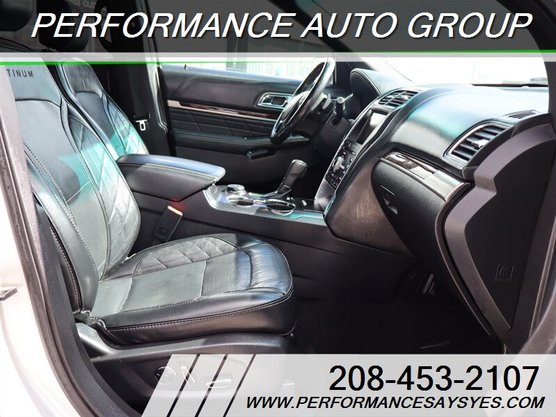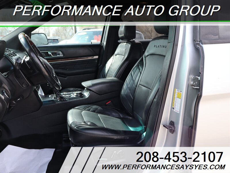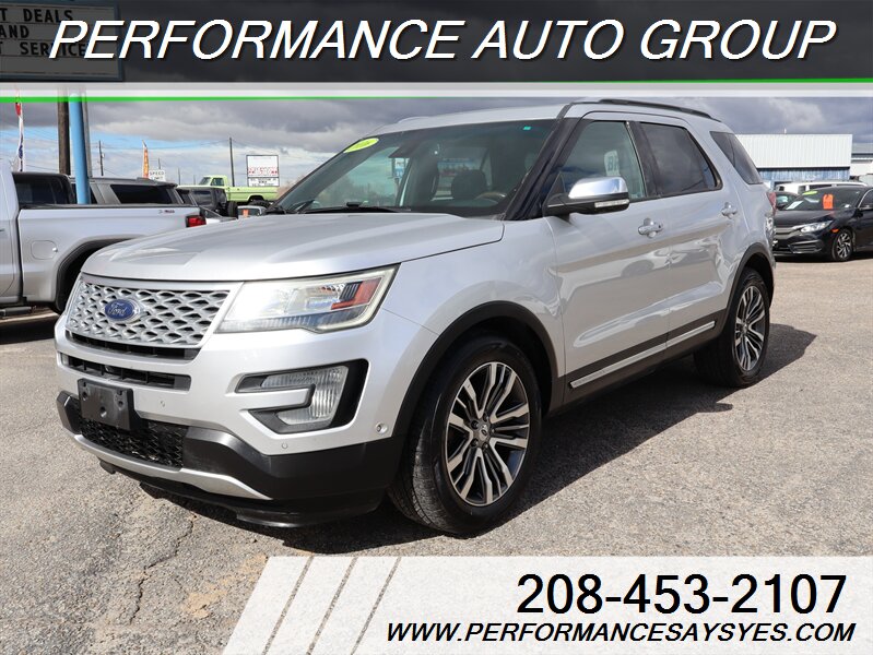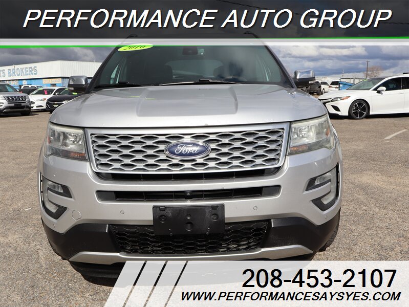 2016 Ford Explorer Platinum — Ingot Silver exterior. This Explorer is powered by the EcoBoost 3.5L twin-turbo V6 producing 365 hp and 350 lb-ft of torque, paired with Ford’s six-speed automatic transmission and full-time intelligent all-wheel drive for confident performance and towing capability. The vehicle is in excellent overall condition, has a clean CARFAX report, and shows a single previous owner.