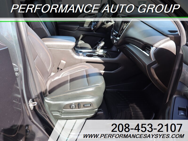 This 2021 Chevrolet Traverse RS is powered by the 3.6L V6 gasoline engine producing 310 horsepower and 266 lb-ft of torque, paired with Chevrolet’s 9-speed automatic transmission. The Traverse is a three-row midsize SUV designed for family duty and long trips, offering a roomy interior with flexible seating configurations and ample cargo capacity. The vehicle is in excellent overall condition and has a clean CARFAX report.